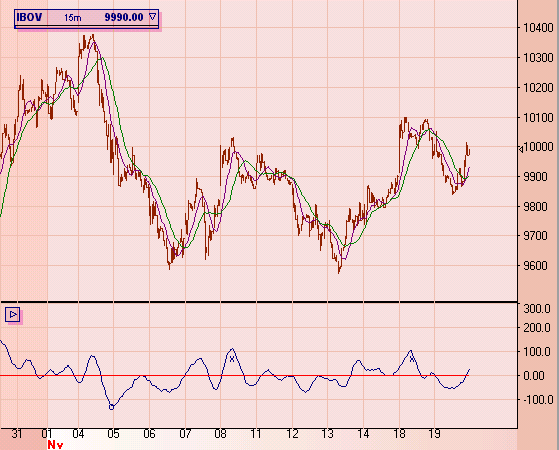 duas medias de 10 e 20 períodos) produz o gráfico
